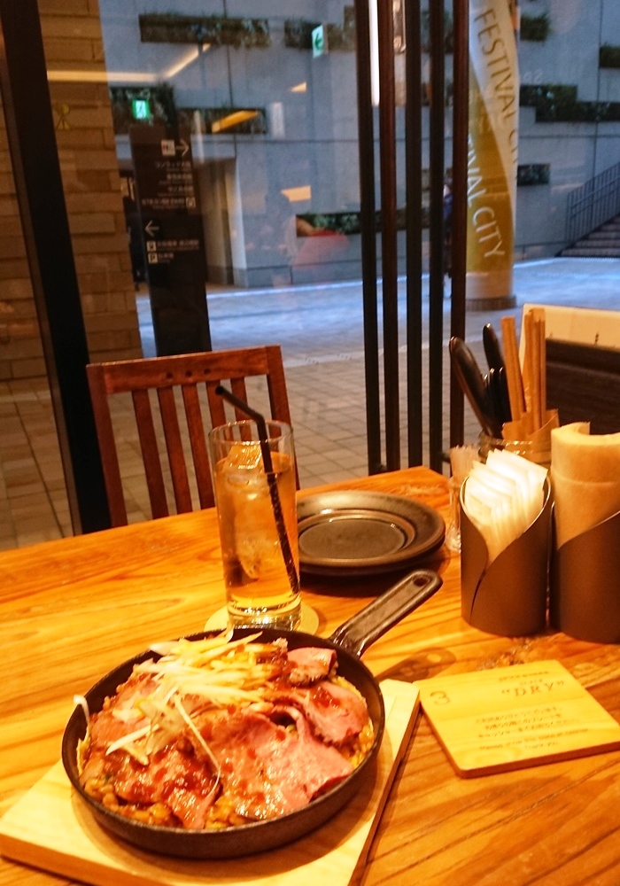 フェスティバルホール近くで、早めの夕食(お店は、SPICE & HERB SUPER "DRY"・・・コースターに書いてある)の時、