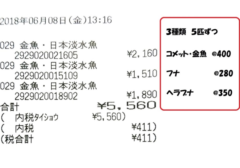 頼んでいた、フナたちが届いていたので、カーマへ受け取りに行った。