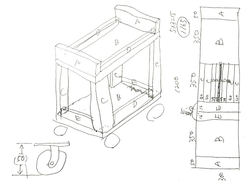 妻と娘達が、母のために日用品をテーブルの下に隠しておいておくワゴンを作ってあげたら良いと言うので・・・
