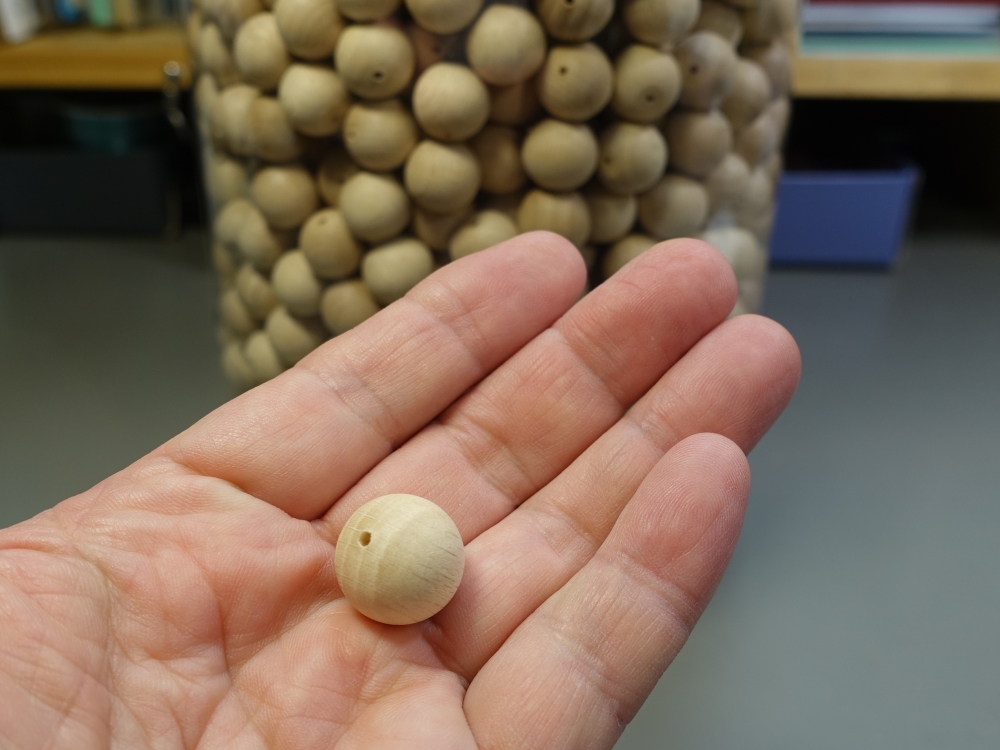 写真は、先日届いた、「ブナ木球17mm-17.5mm・2mm貫通穴」5000個の一部