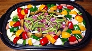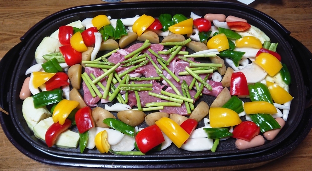 今日の夕食、ほんの少しのお肉と野菜多めの鉄板プレート。