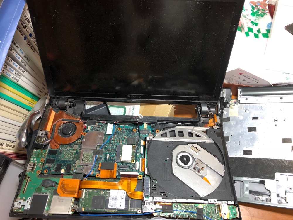 右の写真は、友田先生のVAIOのSSDを僕のVAIOに合体して、SSDのデータを救出しているところ。