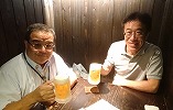 私(堀部・左)と早苗さんと夕食・・・いま書いている原稿の打合せ。