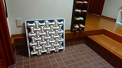 午後、モザイクタイルの展示用スタンドを作り始める。
