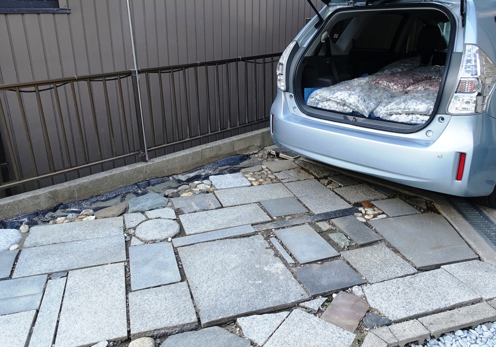 庭の改修のため、端のブロックをとって、上の庭へ移動。