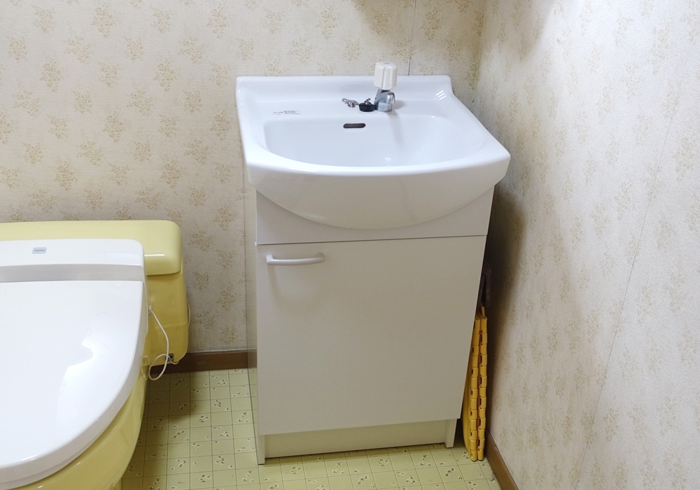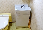2階のトイレの洗面台下の物置に、自作の棚を作成した。