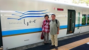 大阪難波から乗ってきたのに、写真を撮ってもらっているときには、行先表示が変更されていました。