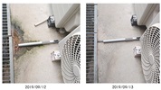自宅の裏にあるエアコンの室外機からの排水の流れが悪い・・・30年以上このままで・・・苔のようなものが・・・。