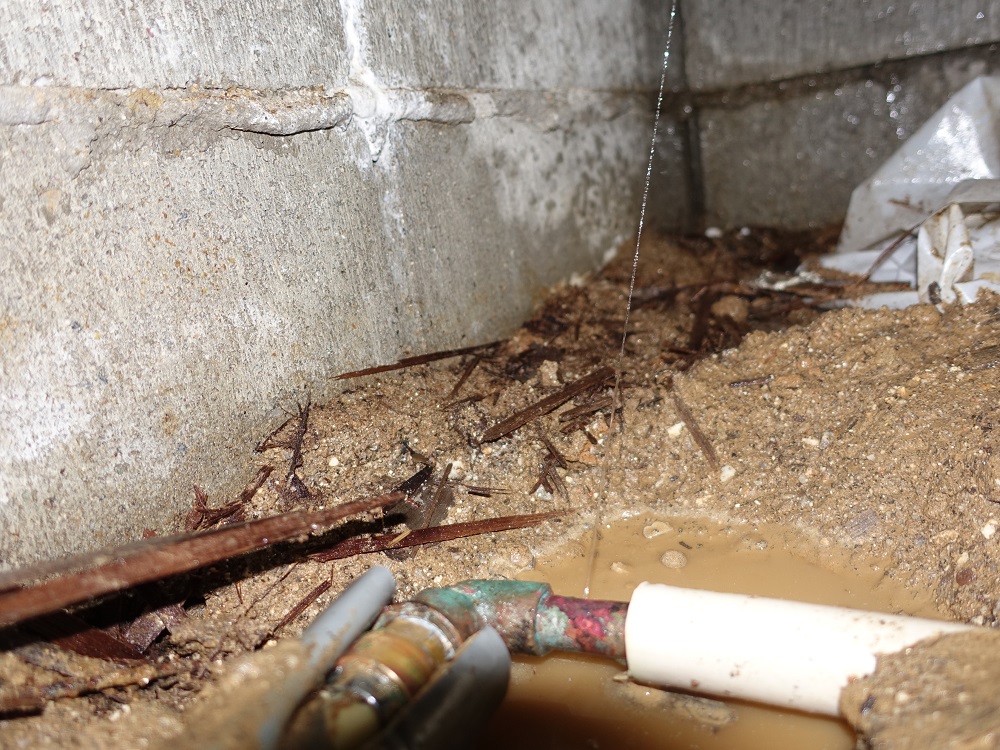 夜9時頃に、洗面所の床下から、水漏れのような音に妻が気づいた。