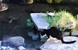 水を飲みに来たり、魚を眺めたりしているのは何度も見ているのだが、撮影に成功したのは初めてです。