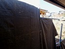 足場が立ち、隣の建物に関係するところはカバーがついた。