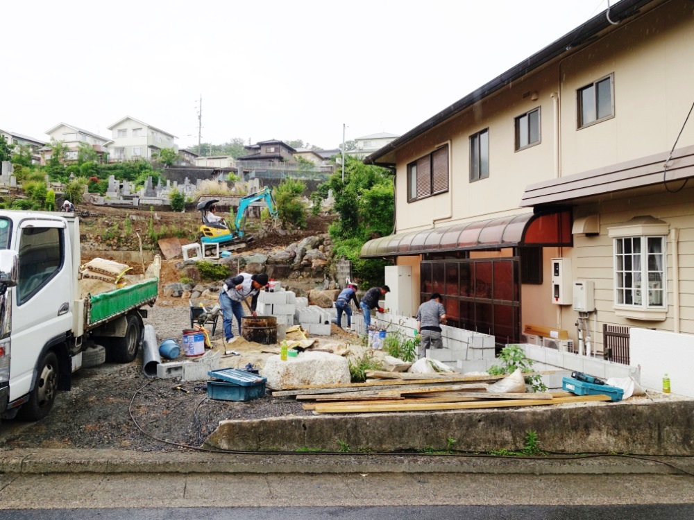 今日は良い天気で・・・庭の工事の様子をパチリ。