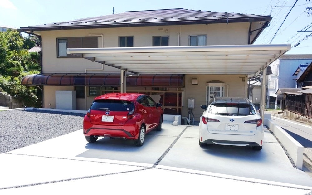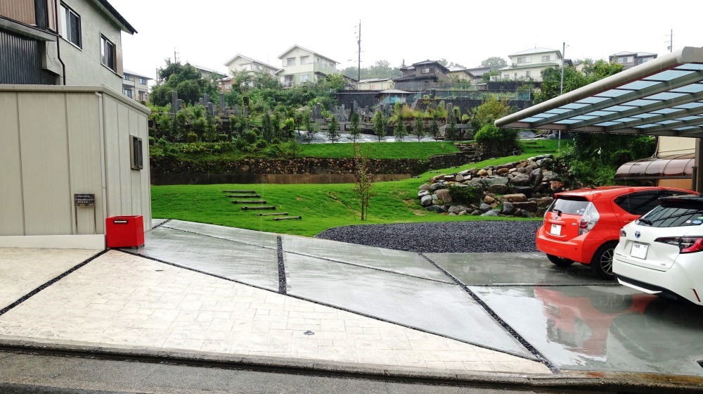 駐車場と階段の取り合わせを考え、1台に1本にした。