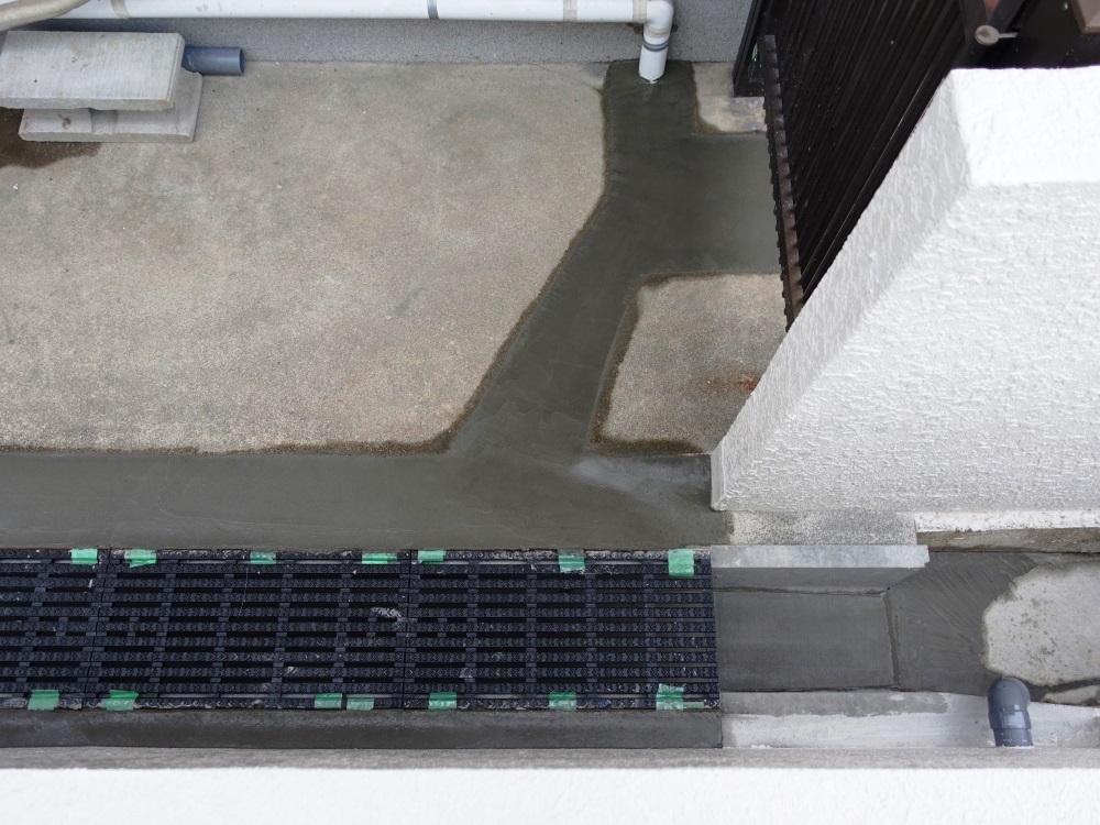 道路側階段とその周辺の水傾斜付きコンクリ仕上げ