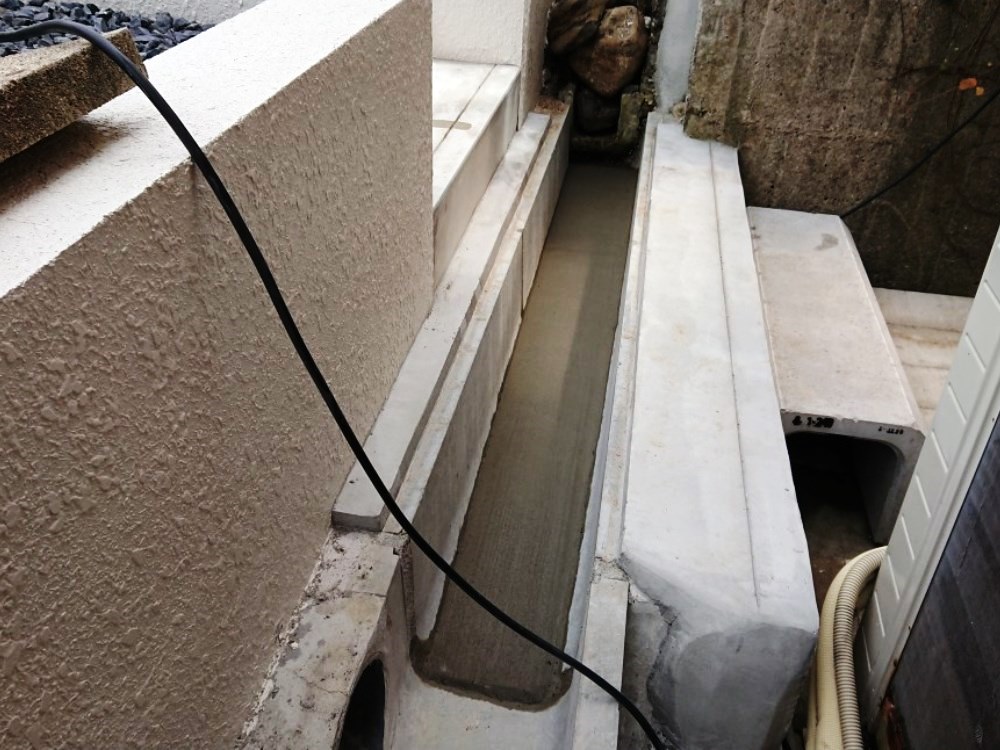 最後に残っていた奥のグレーチング下のU字溝傾斜のコンクリート打設