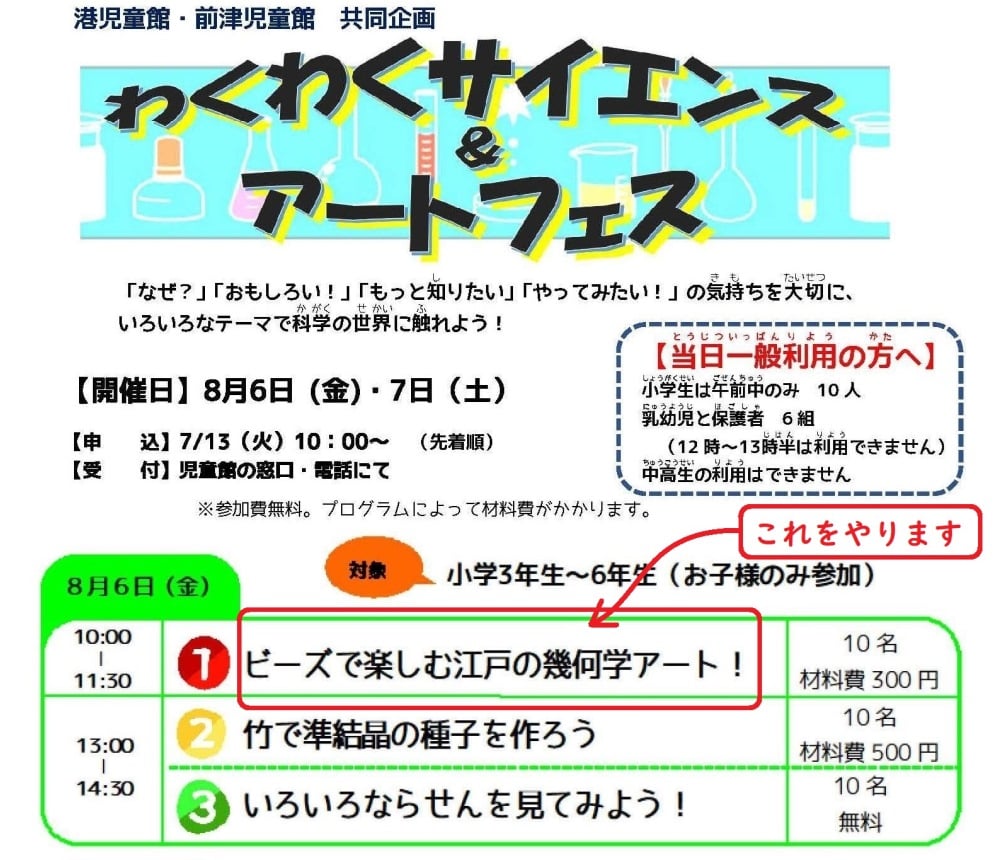 名古屋市・港児童館にて「わくわくサイエンス&アートフェスタ」
