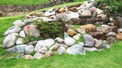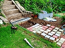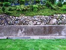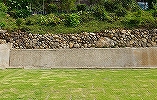 新しい庭の石積みの石の間の土部分にコンクリートを打つ予定。