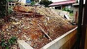 で、ついでに、昨日の一部落下した古い擁壁を見に来て、修理方法を考えてもらう話・・・。
