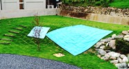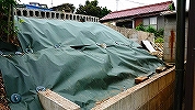 今夜から数日続きそうな雨に備え先日直してもらった芝の部分をブルーシートで覆った。