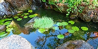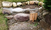 上段の庭の角のパイプ隠しの石をさらに加えて、一応の形ができた。