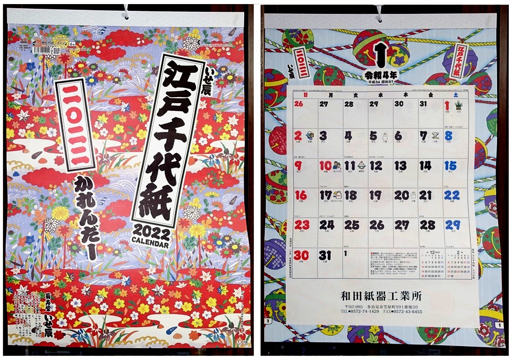 近所の和田さんから「江戸千代紙」カレンダーをいただいた。