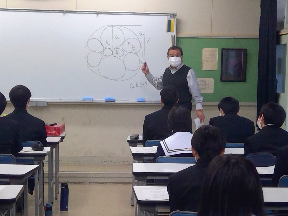 後半は、クリスマスプレゼント&お年玉として、ちょっとムツカシイ幾何の問題を出題。