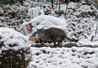 そして、雪の庭に見廻り中の猫・猫って雪が好きだったっけ?
