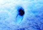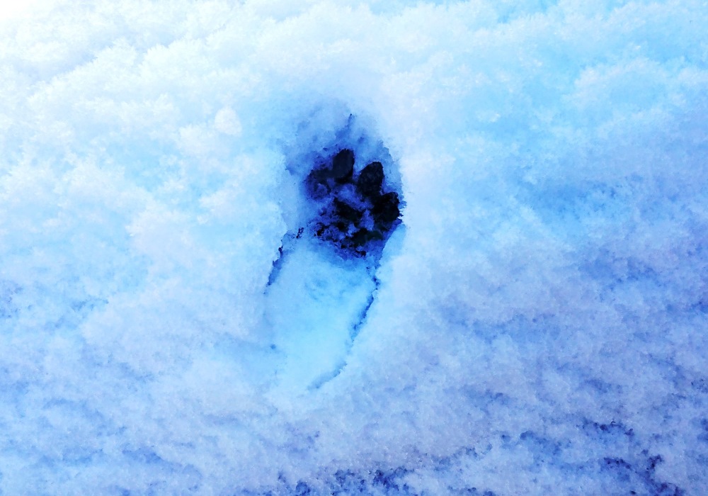 芝の上の雪に先客の足跡がハッキリと・・・。