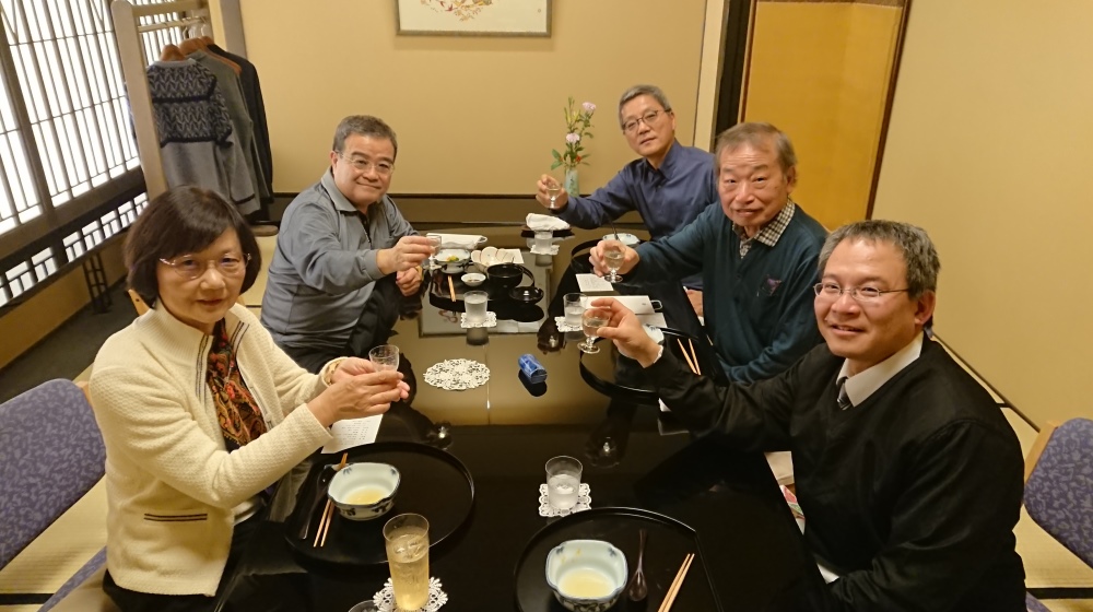 左から、京子、私(和経)、都市設計会長・中西さん、石黒建設前社長・柴田さん、石黒建設・荻原さん。
