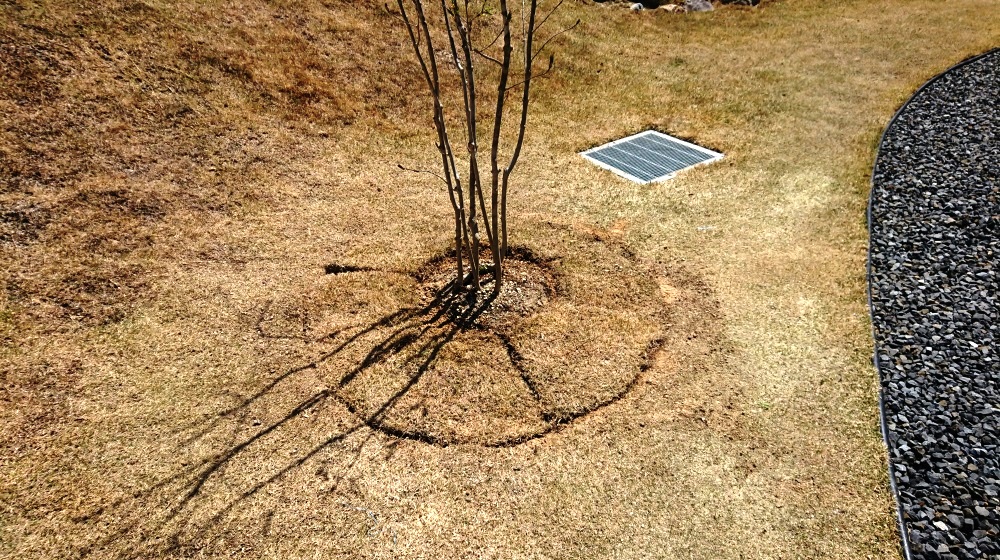 帰宅後、北庭の穴空きパイプの暗渠のつまりを直した。