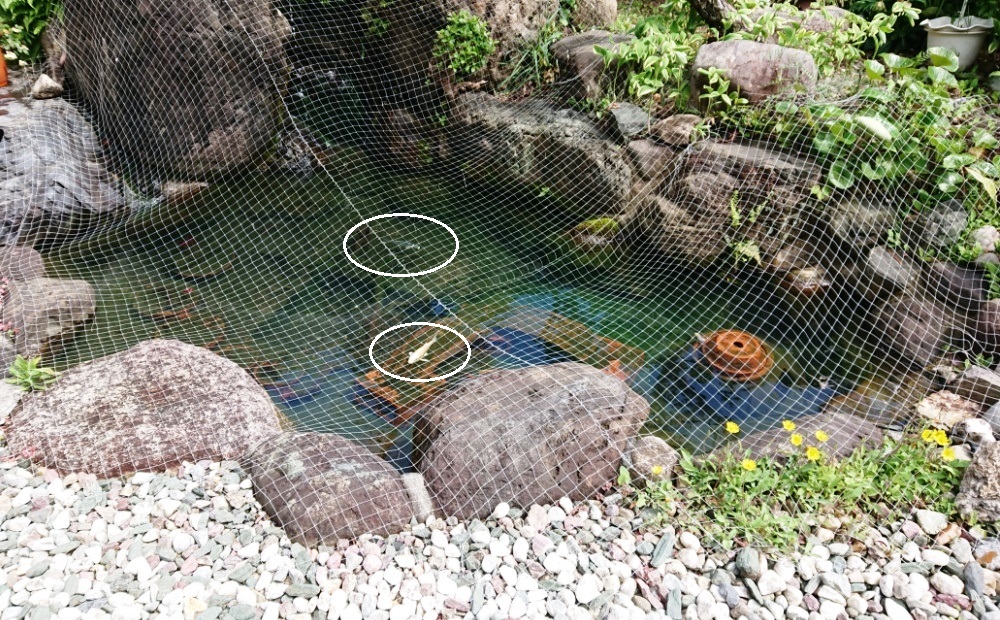 金魚は1匹だけ・・・寂しい・・・3匹だけの池。