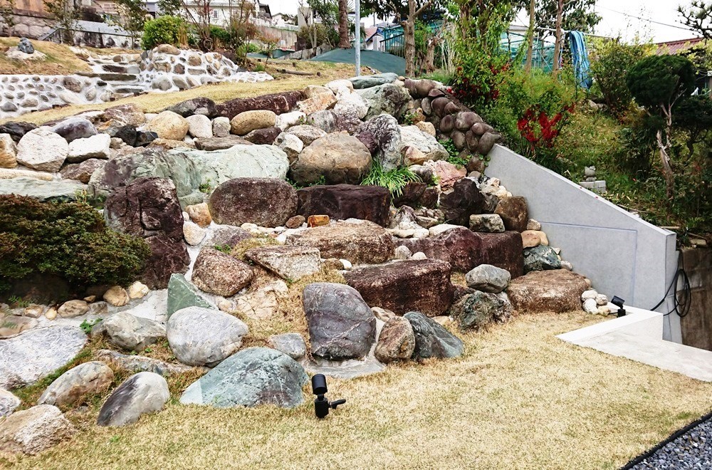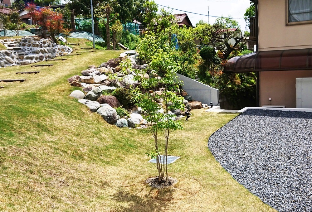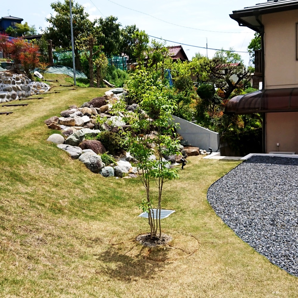 砂利の下に水が流れていくように、パイプ等も通し、結構うまく出来たのではと思っています。