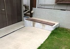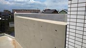 北庭のコンクリート製の台上の椅子の塗装をし直すための補修を始めた。