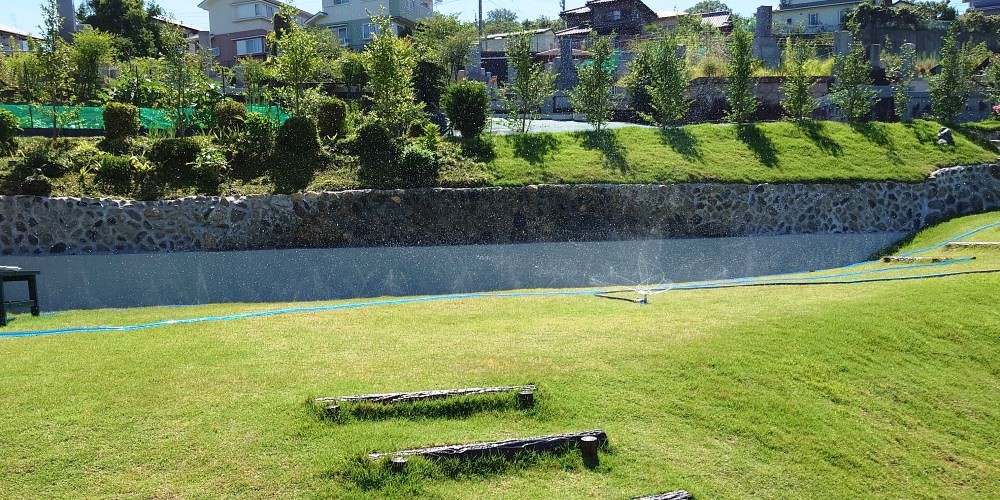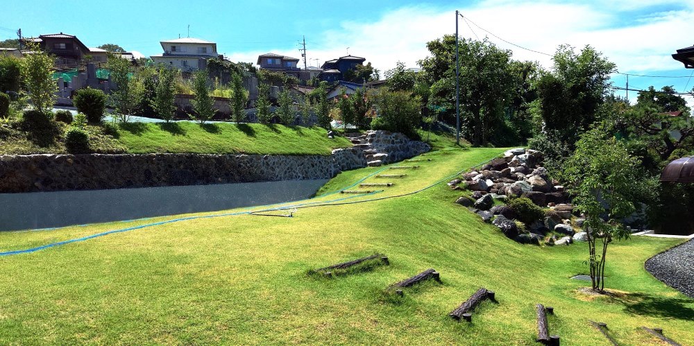 網は金魚の為の動物除け。普段は池をカバーしてます。