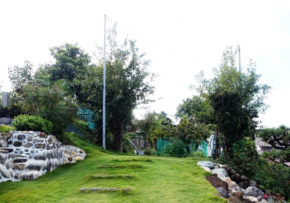 この写真では、よく見えないが、上の段の防草シートを一部直した。