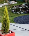 北庭の入り口「ゴールドスレスト」のプランターを再配置。