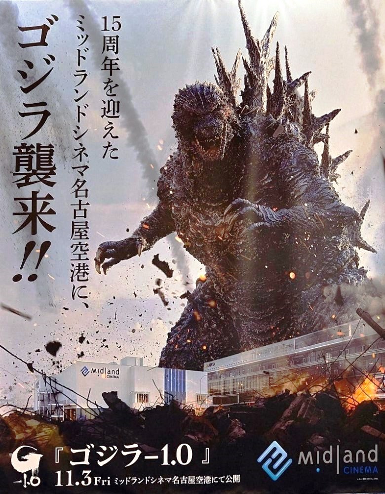 夕方、ミッドランドシネマ空港で「ゴジラ -1.0」を見てきた。