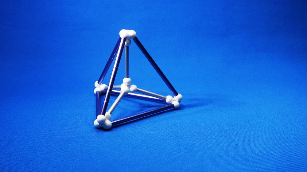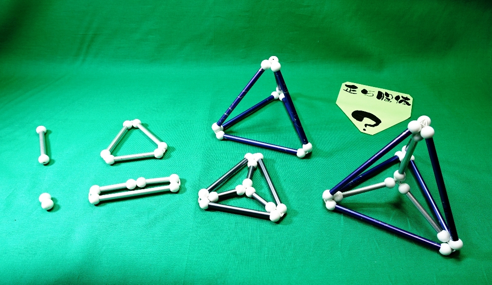 線分・正3角形・正4面体。正5胞体とその正射影の図形の模型。