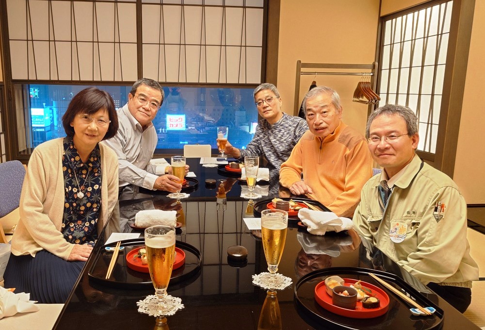 左から、京子、私(和経)、都市設計会長・中西さん、石黒建設前社長・柴田さん、石黒建設・荻原さん。