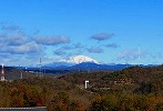 今シーズンの初雪と、午後の晴天とサザンカの花