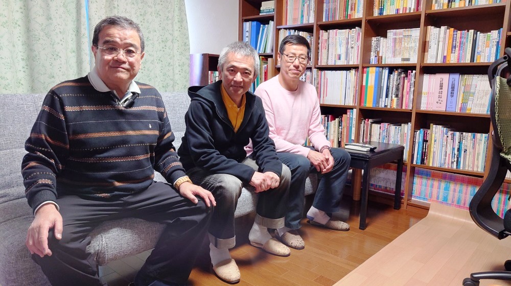 左から私(堀部)川村さん和田さん(自宅書斎、ランチのお店の写真)