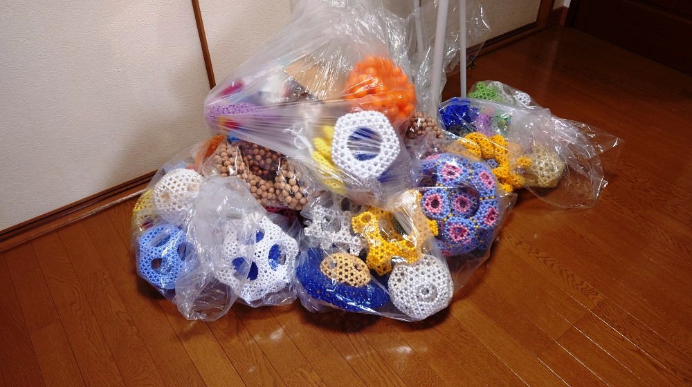 3枚目は、中央に設置してあった、1224個の木球作品の袋詰め。
