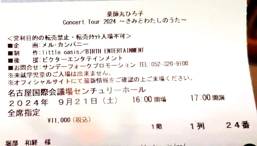 薬師丸ひろ子のコンサート(9/21土)のチケットをコンビニで発行してきた。