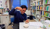 毎日、ビーズ編みとその準備のための木球の穴開け作業。