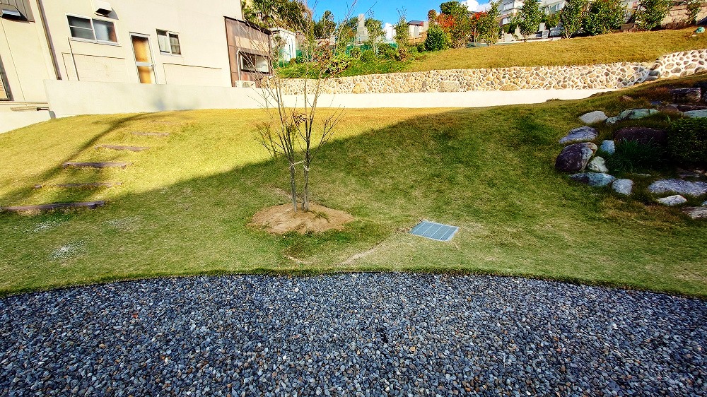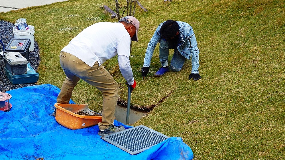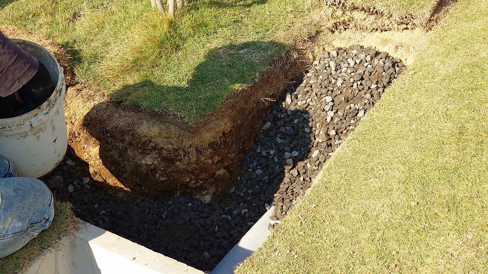 アオダモの根腐れを防ぐ排水の為の暗渠工事をした。