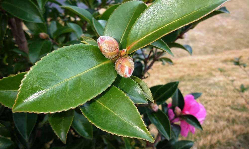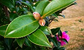 庭のサザンカが一輪咲き始め、蕾も膨らみました。