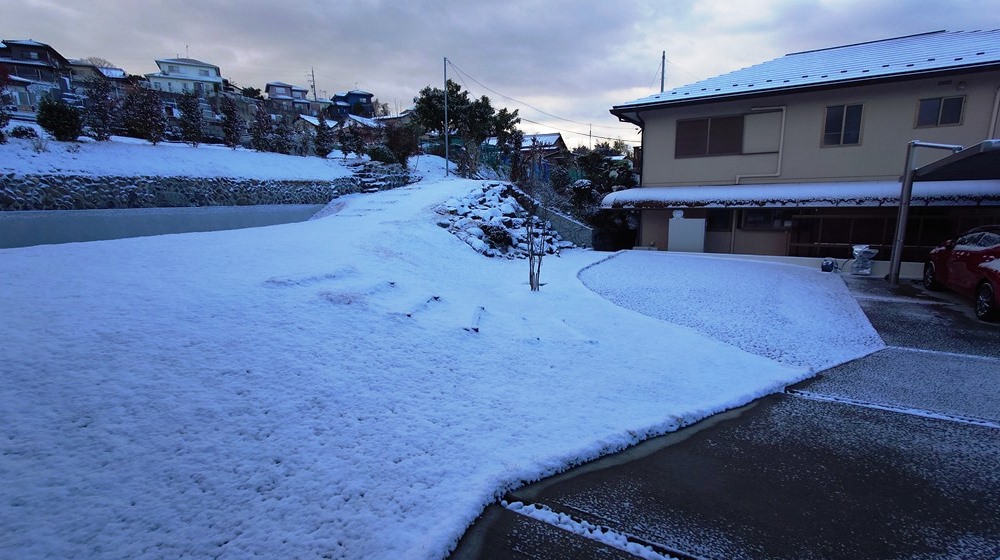 9時半頃の南の車と北庭、3枚目は2時半頃の北庭。