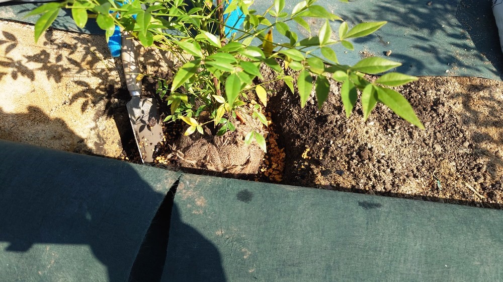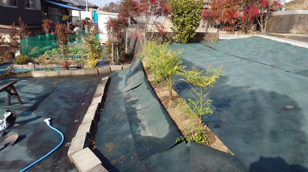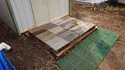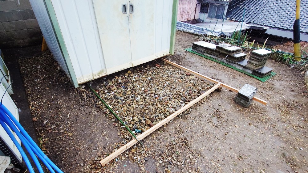 古小屋の前にブロックで犬走りを作る為、土台を作り始めた。