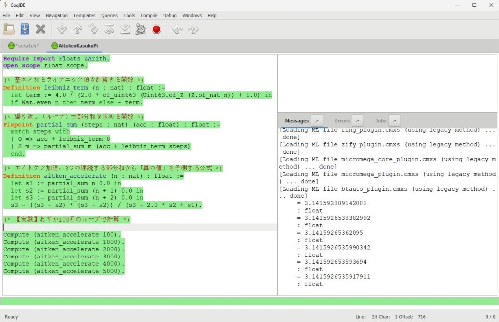 Coqの世界で、一応Codeを書いて(計算?かな)をする事までは確認できた。