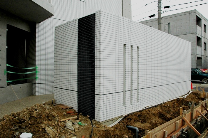 ![]() ![]() ![]() 2009/2/14 足場を固定 していた部分 のタイルの 仕上げ |